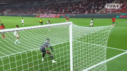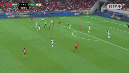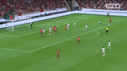第85分钟,欧纳希弧顶位置调整兜射破门,摩洛哥5-0