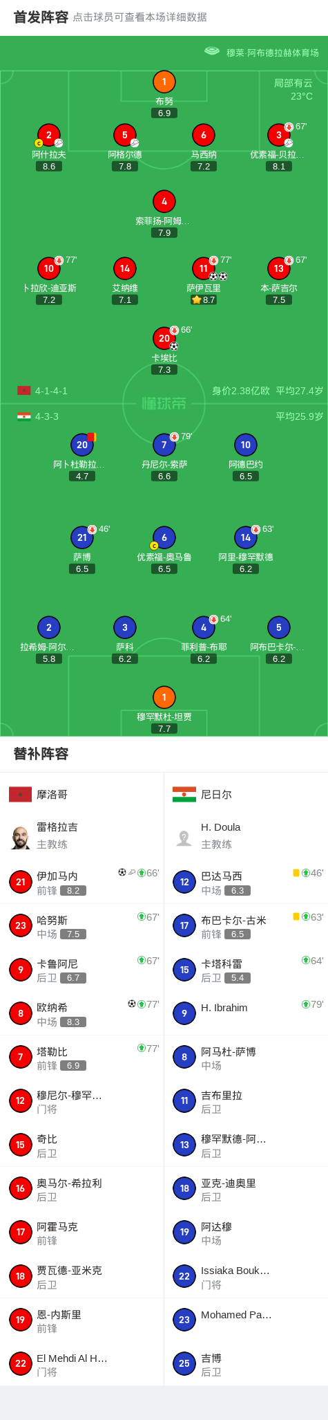 北京时间9月6日,世界杯非洲区预选赛小组赛第7轮,摩洛哥迎战尼日尔。比赛中,尼日尔球员阿卜杜勒拉蒂夫-古米在第26分钟因累计两张黄牌被罚下场,摩洛哥随后占据场上优势。 第29分钟,萨伊瓦里为摩洛哥首开纪录。第38分钟,萨伊瓦里再下一城,完成梅开二度。第51分钟,卡埃比接优素福-贝拉马里助攻破门得分。第69分钟,伊加马内由阿格尔德助攻建功。第84分钟,伊加马内...